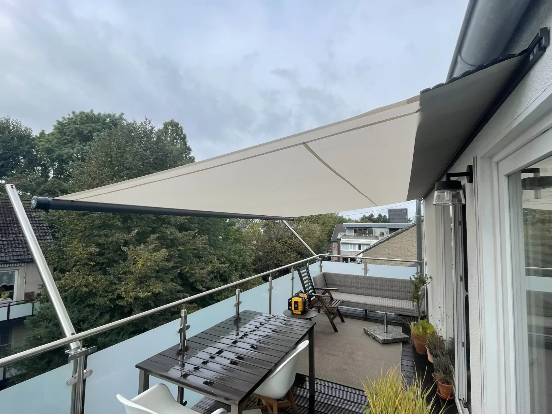 Aufrollbares Twistersegel… Wasserdicht und schmutzabweisend – eine fantastische Verbindung des modernen Sonnensegels und der klassischen Markise.