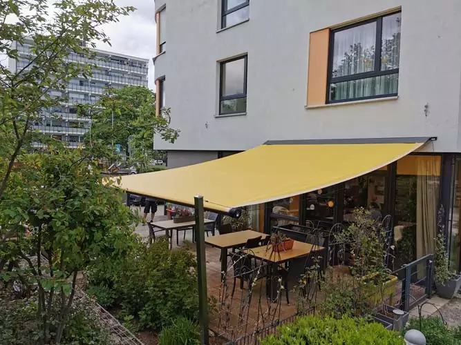 Die entsprechende Sensorik sorgt auch bei unvorhergesehenen Wetterlagen wie starkem Wind für ein automatisches Einfahren des Sonnensegels. So wird das Segel zuverlässig vor Schäden geschützt.