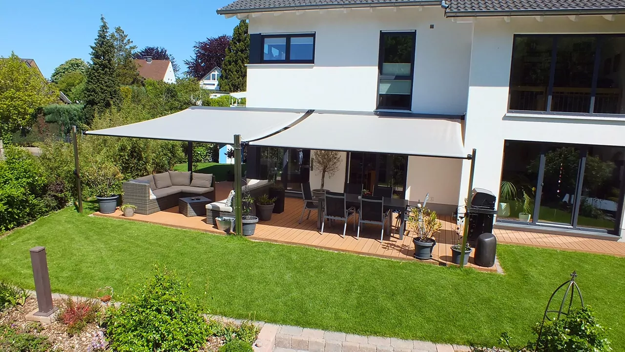 Verwirklichen Sie Ihre Sommerträume mit der luftig, eleganten Optik eines Sonnensegels. Diese stilvolle Erweiterung Ihres Außenbereichs ermöglicht Ihnen, die Zeit im Freien entspannt zu genießen.
